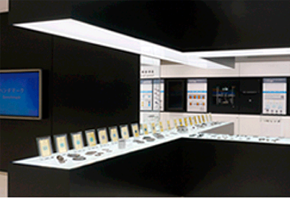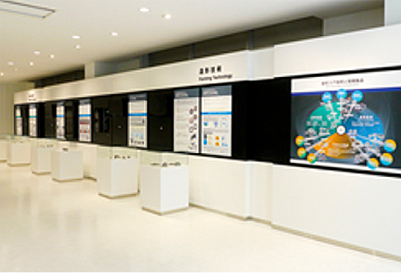 テクニカルショールームでは、パネルや映像、サンプル品、模型、デモ機などを使って、OSS独自の技術を視覚的に理解しやすいように工夫し紹介しています。